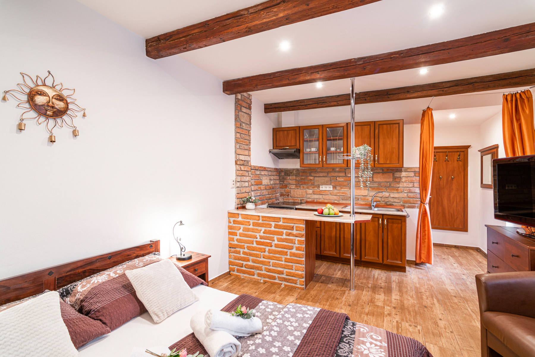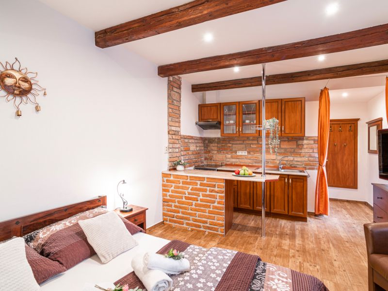 Apartmány in Veritas se nacházejí v centru města Mikulov, v okrese Břeclav. Tato oblast, tak jako celá jižní Morava, je známá svým vínem. Naše apartmány a studio poskytují komfortní ubytování a zaručují soukromí navzdory své poloze v blízkosti centra.